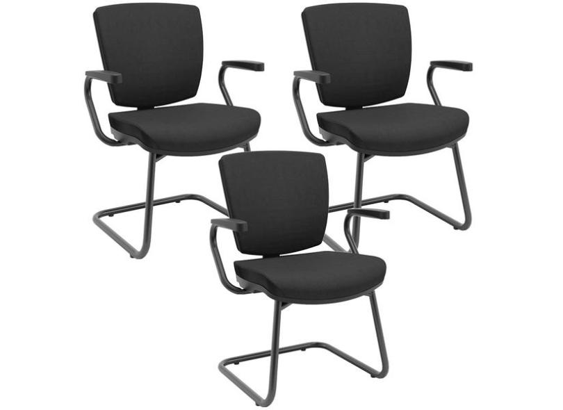 Kit 03 Cadeiras Escrit rio Fixa Executiva Office Preto Slim B