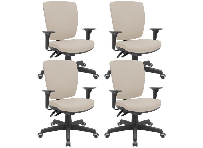 Kit 04 Cadeiras de Escritório Diretor Office Base Giratória Preto Alta Flexi P03 Vinil Bege - Lyam