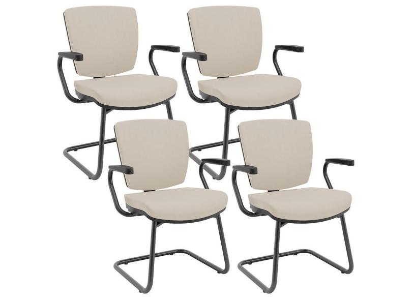 Kit 04 Cadeiras De Escritório Fixa Executiva Office Preto Slim Baixa Flexi P03 Vinil Bege