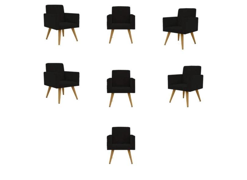 Kit 07 Cadeiras Poltronas Decorativa - Escritório - Recepção Cor:preto