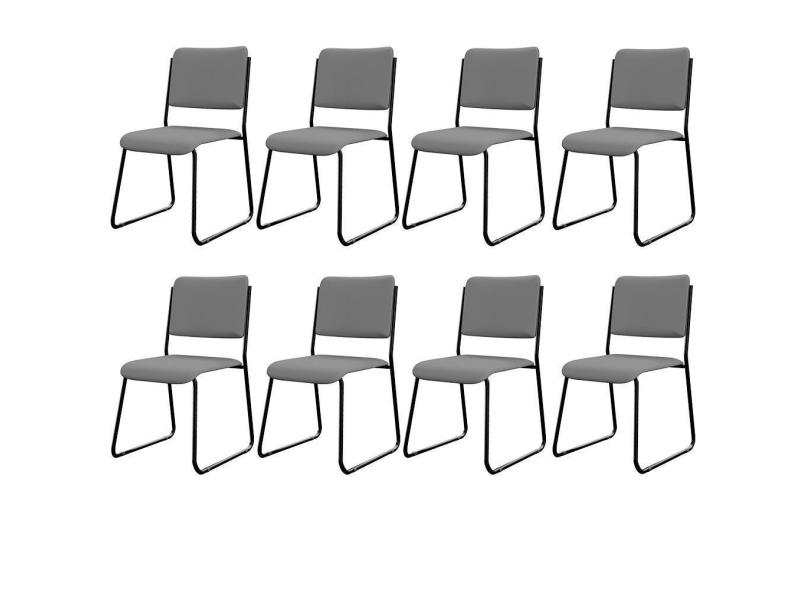 Kit 08 Cadeiras Hoteleira Auditório Empilhável Inter L02 Facto Cinza - Lyam Decor