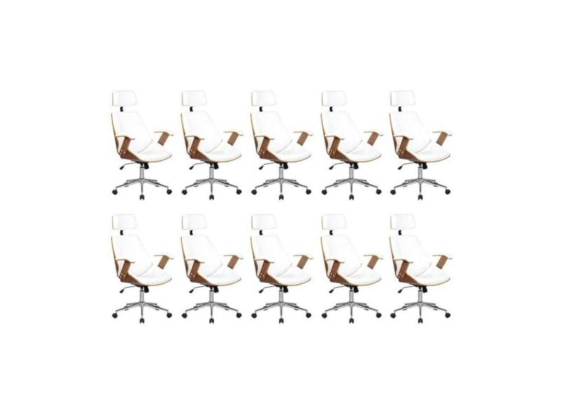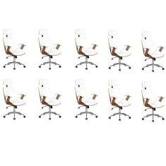 Kit 10 Cadeiras de Escritório Presidente Giratória com Apoia Cabeça Office Lisboa Branco/Marrom