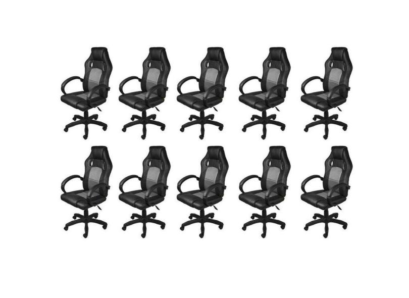 Kit 10 Cadeiras Gamer com Relax e Braço Estofado Raptor 3316 Preto