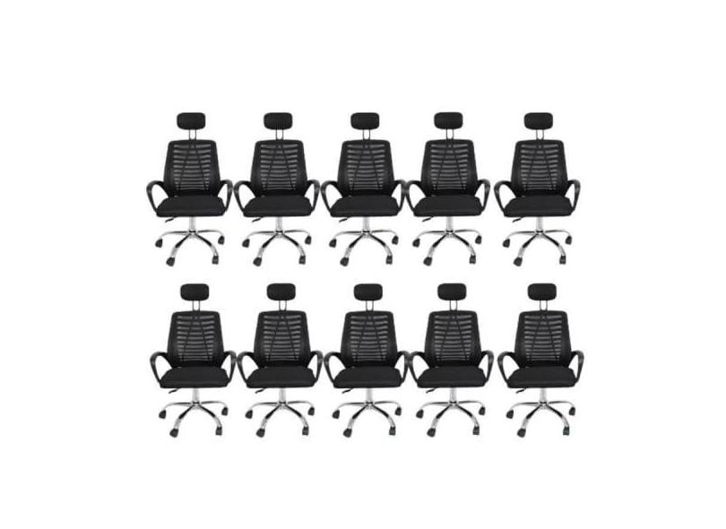 Kit 10 Cadeiras Office Presidente com Encosto e Rodízios Cádis Preto