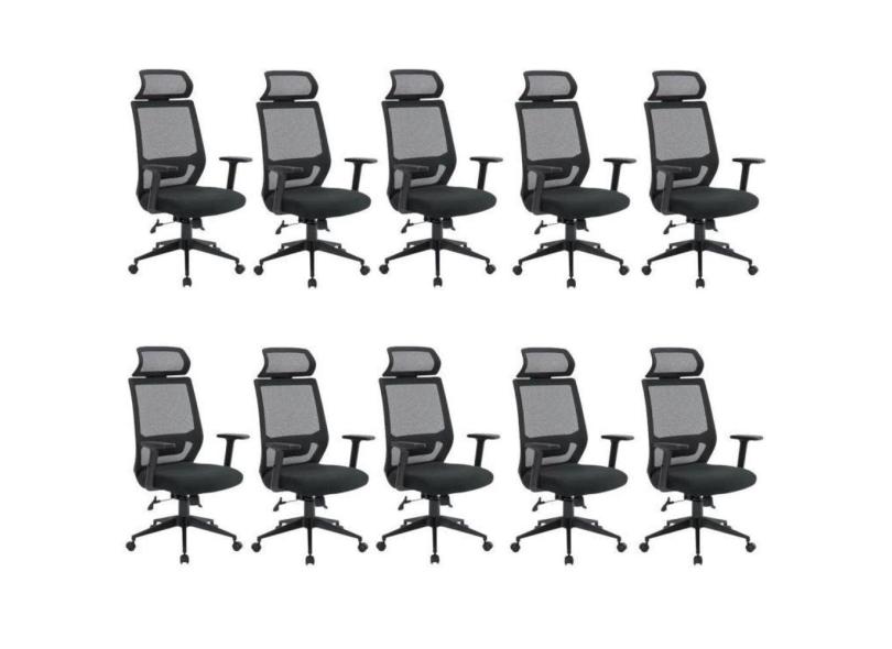 O menor preço encontrado no Brasil para Kit 10 Cadeiras para Escritório Genebra Presidente com NR17 Preto atualmente é R$ 8.310,96.