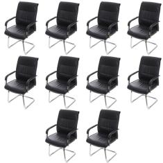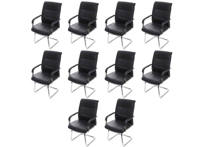 Kit 10 Cadeiras para Escritório Interlocutor Estofada em Sintético Estocolmo 3323 Preta