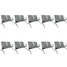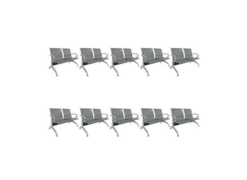 Kit 10 Cadeiras para Escritório Longarina 2 Lugares Dubai Cinza
