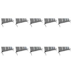 Kit 10 Cadeiras para Escritório Longarina 4 Lugares Dubai Cinza