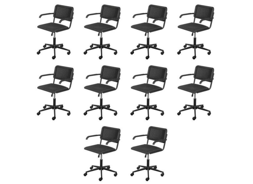 Kit 10 Cadeiras para Escritório Palhinha com Braço e Base Rodízio Cesca Preto