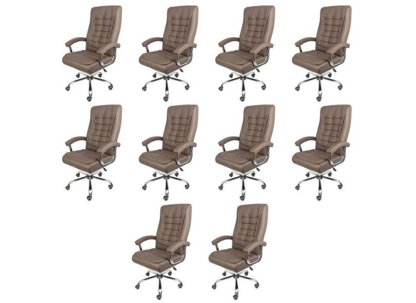 Kit 10 Cadeiras para Escritorio Presidente com Mola Ensacada Estofada em Sintético Oslo 3321 Café