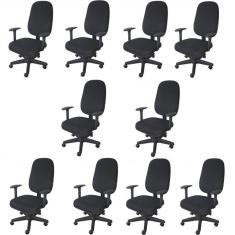 O menor preço encontrado no Brasil para Kit 10 Unidades Cadeira Escritório Secretária Giratória com Braço Regulável em Couro Preto atualmente é R$ 6.844,29.
