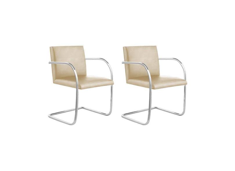 Kit 2 Cadeiras Brno Para Escritório Couro Sintético Bege Tubular Cromada Cor Bege