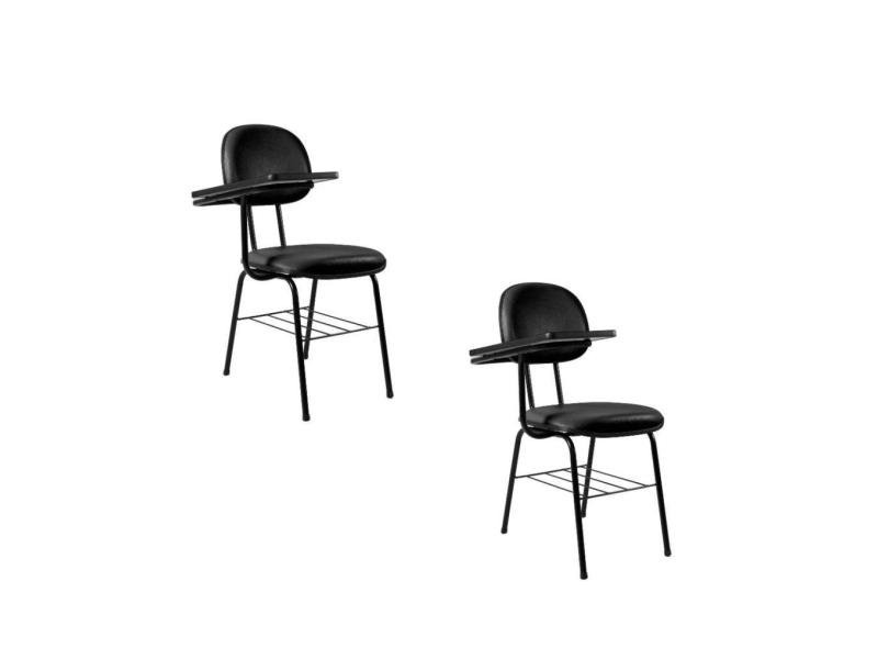 Kit 2 Cadeiras com Porta Livros Universitária Ecoflex Preto