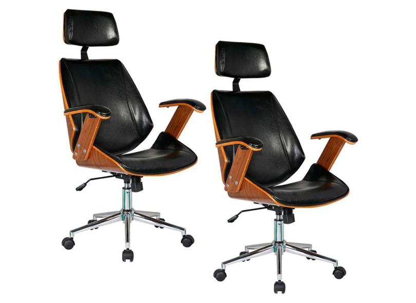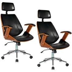Kit 2 Cadeiras De Escritório Presidente Giratória Liziê R02 Sintético Preto - Mpozenato