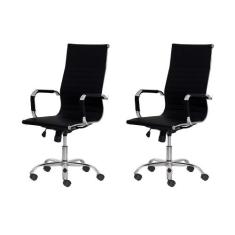 Kit 2 Cadeiras Escritório Stripes Presidente PU Base Giratória Cromada Altura Ajustável