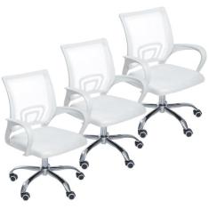 Kit 3 Cadeiras de Escritório Mesh Assento Estofado Base Giratória 9050