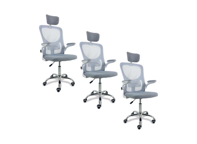 Kit 3 Cadeiras Escritório Diretor Giratória Vita Cinza