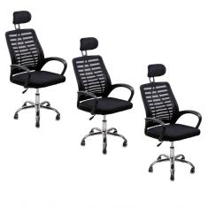 Kit 3 Cadeiras Escritório Diretor Tela Mesh Encosto De Cabeça Preto