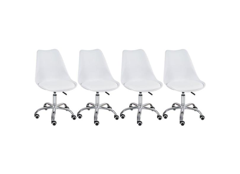 Kit 4 Cadeiras Com Rodízios Tulipa Office Branco