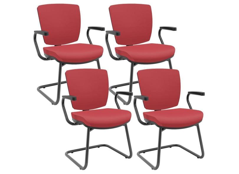 Kit 4 Cadeiras De Escritório Fixa Executiva Office Preto Slim Baixa Flexi P03 Vinil Vermelho - Lyam