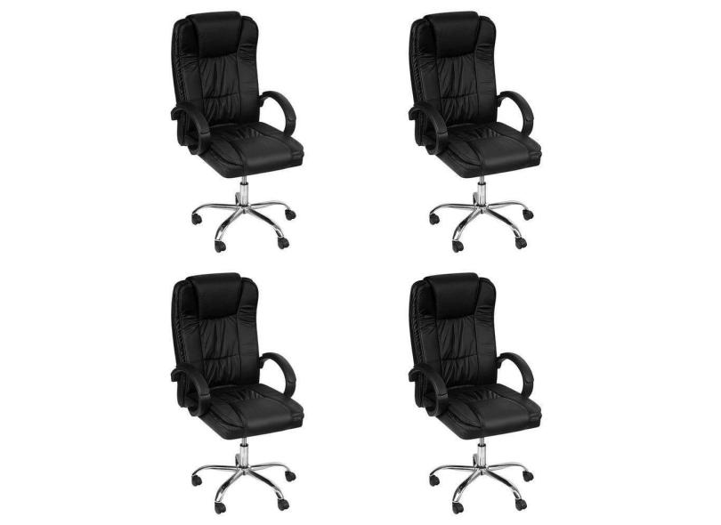 Kit 4 Cadeiras De Escritório Giratória Monaco Presidente Preto