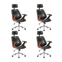 Kit 4 Cadeiras Escritório Presidente Giratória Kopenhagen Apoio Cabeça