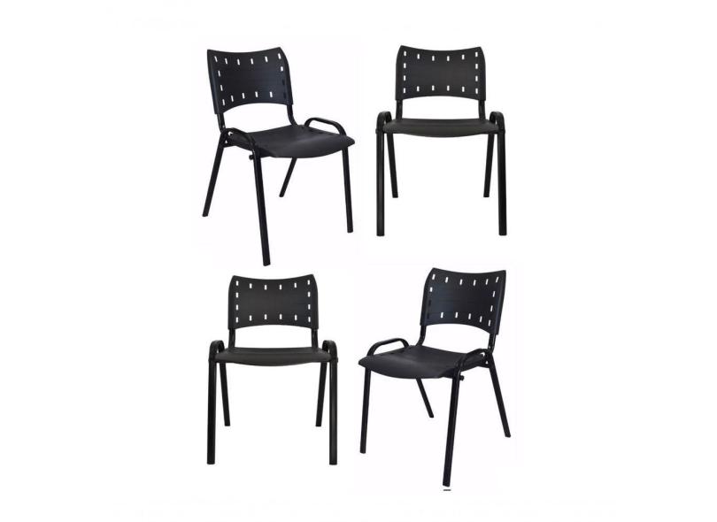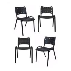 Kit 4 Cadeiras Iso Para Escola Escritório Comércio Preto Base Preto