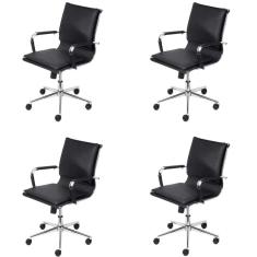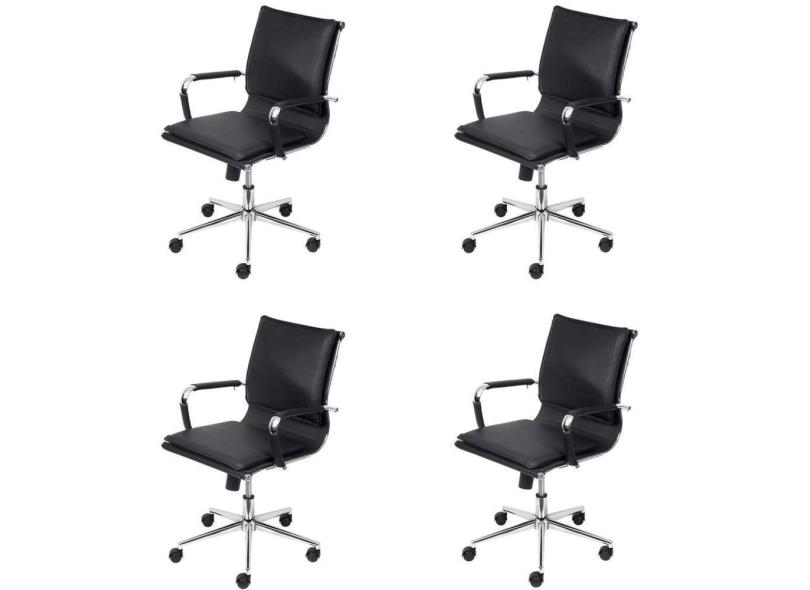 Kit 4 Cadeiras para Escritório Baixa Estofada em Sintético com Rodízios 3304 OR Design Preta