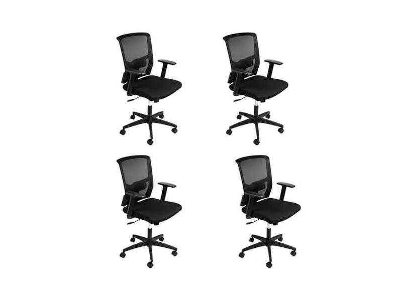 Kit 4 Cadeiras para Escritório Diretor com Nr17 Tóquio 3329 Preto Preto Preto