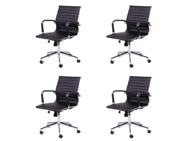 O menor preço encontrado no Brasil para Kit 4 Cadeiras para Escritório Diretor Esteirinha com Relax Sintético 3301 Or Design Preto atualmente é R$ 2.120,16.