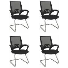 Kit 4 Cadeiras para Escritório Interlocutor Visitante Preto