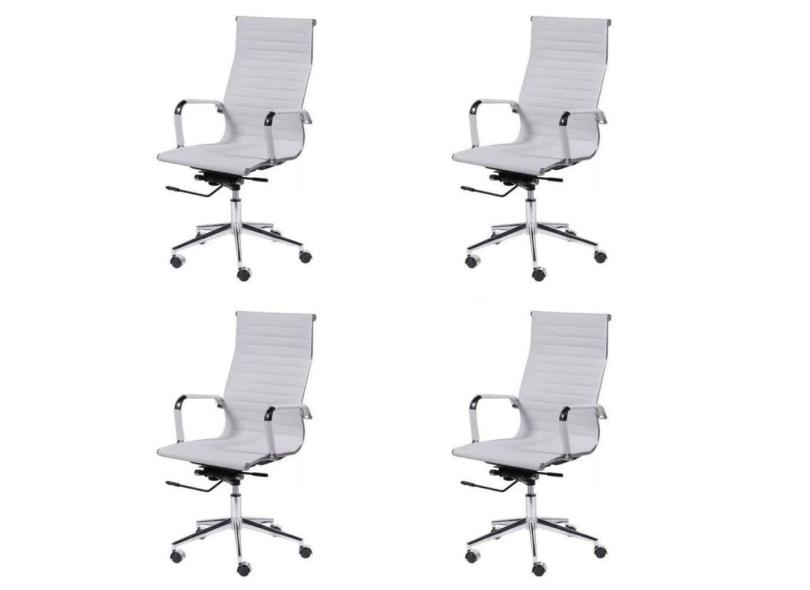 Kit 4 Cadeiras para Escritório Presidente Esteirinha com Relax Sintético 3301 Or Design Branco