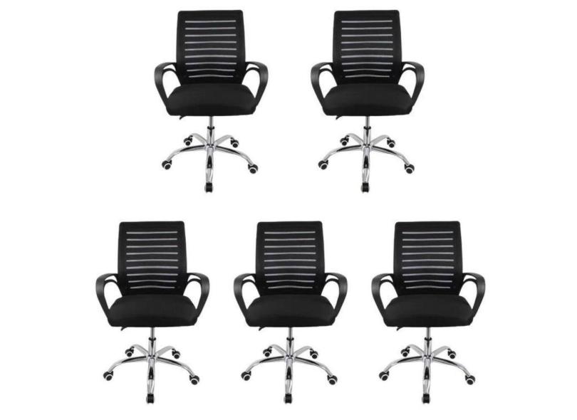 Kit 5 Cadeiras Escritório Diretor Giratória Office Zebrada Estofado Mesh Preto