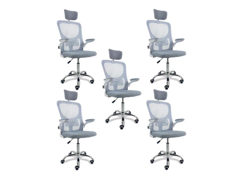 Kit 5 Cadeiras Escritório Diretor Giratória Vita Cinza