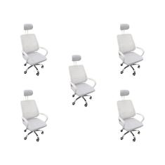 O menor preço encontrado no Brasil para Kit 5 Cadeiras Escritório Diretor Mesh Encosto Cabeça Branco atualmente é R$ 1.699,99.