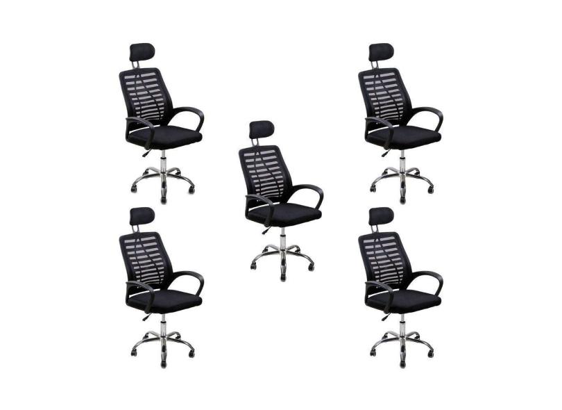 Kit 5 Cadeiras Escritório Diretor Tela Mesh Encosto De Cabeça Preto