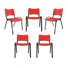 Kit 5 Cadeiras Iso Para Escola Escritório Comércio Vermelha Base Preta