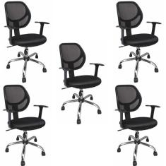 O menor preço encontrado no Brasil para Kit 5 Cadeiras para Escritório Diretor com Apoio para Braços Blk Preto atualmente é R$ 2.999,88.