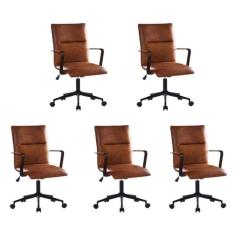 Kit 5 Cadeiras para Escritório Diretor Giratória em Couro Palermo Caramelo