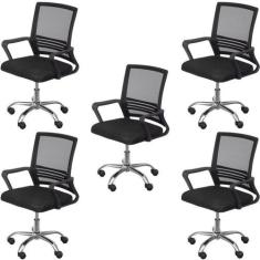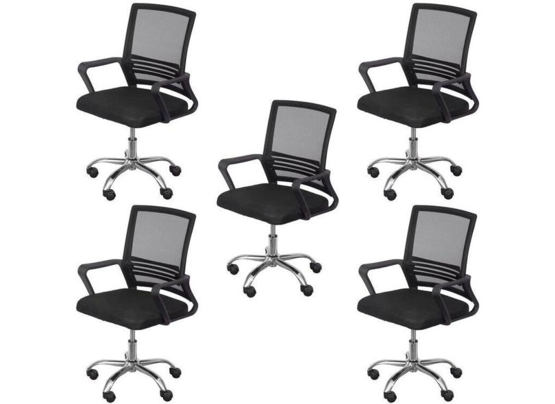 Kit 5 Cadeiras para Escritório Diretor Lyon Baixa em Tela Mesh Preto