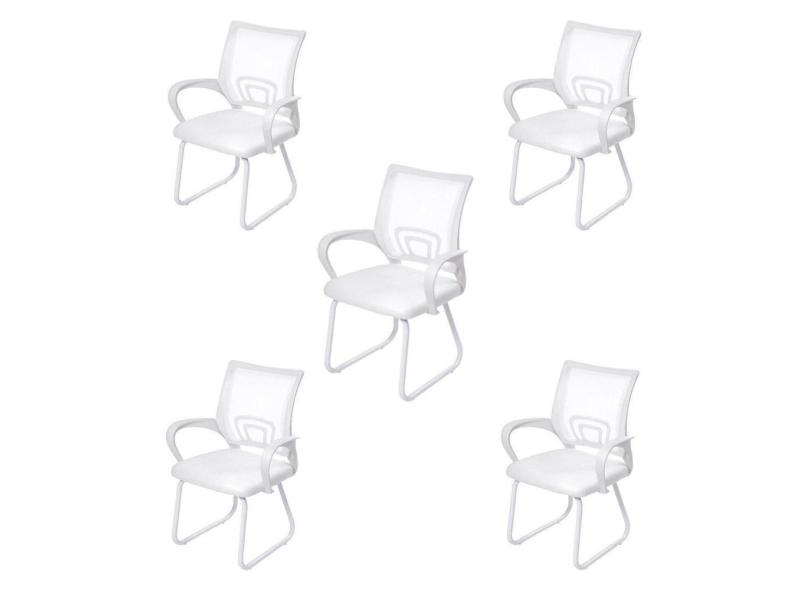 Kit 5 Cadeiras para Escritório Interlocutor Fixa Tela Mesh Tok 3310 OR Design Branco