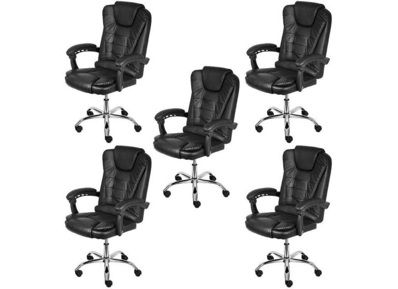 Kit 5 Cadeiras para Escritório Presidente Estofada Jacarta Preto