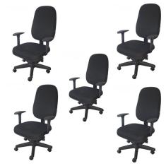 O menor preço encontrado no Brasil para Kit 5 Unidades Cadeira Escritório Secretária Giratória com Braço Regulável em Couro Preto atualmente é R$ 3.422,14.