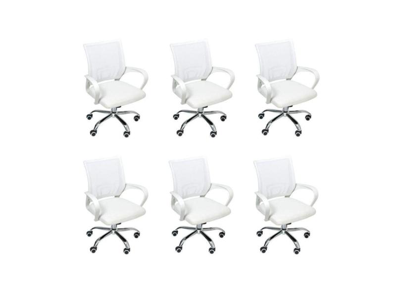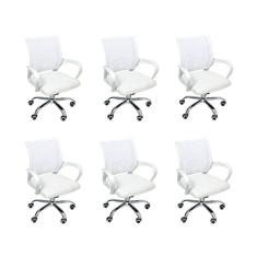 Kit 6 Cadeiras De Escritório Begonia Tela Mesh Ergonômico Branco