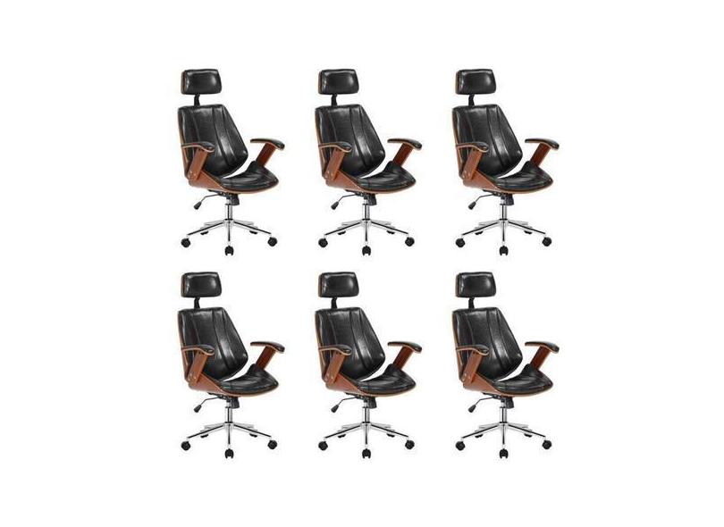 Kit 6 Cadeiras Escritório Presidente Giratória Kopenhagen Apoio Cabeça
