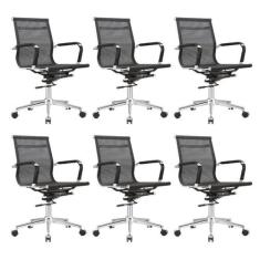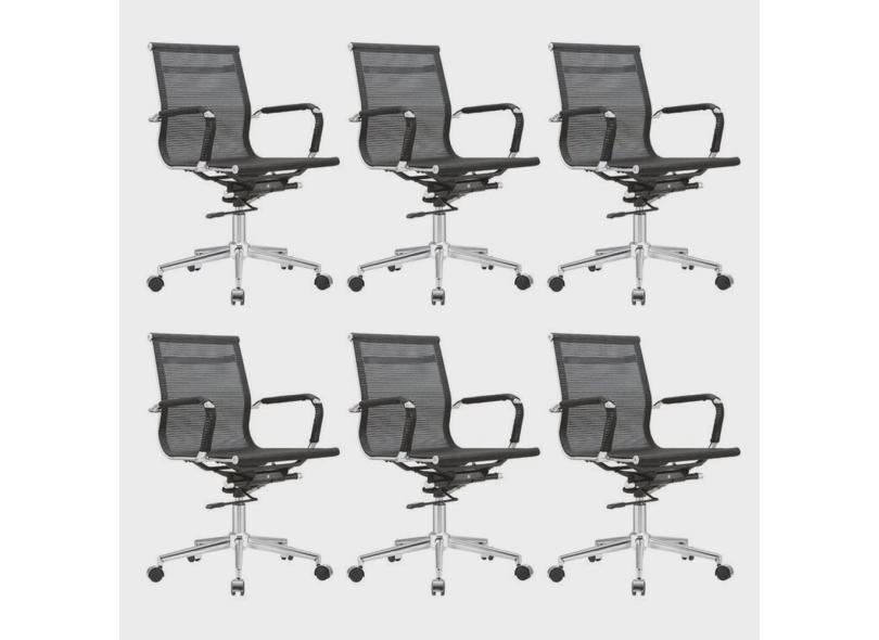 Kit 6 Cadeiras para Escritório Diretor Giratória Aço Cromado Sidney
