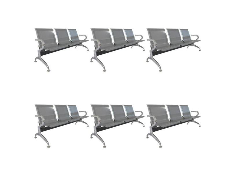 Kit 6 Cadeiras para Escritório Longarina 3 Lugares Dubai Cinza