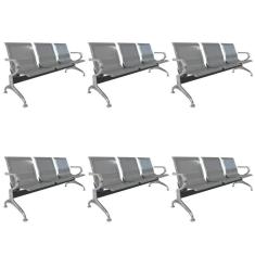 Kit 6 Cadeiras para Escritório Longarina 3 Lugares Dubai Cinza
