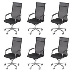 Kit 6 Cadeiras para Escritorio Presidente Alta Roma 3312 Preto