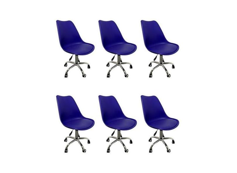 Kit 6 Cadeiras para Escritório Secretária Decorativa Eames Chicago Azul